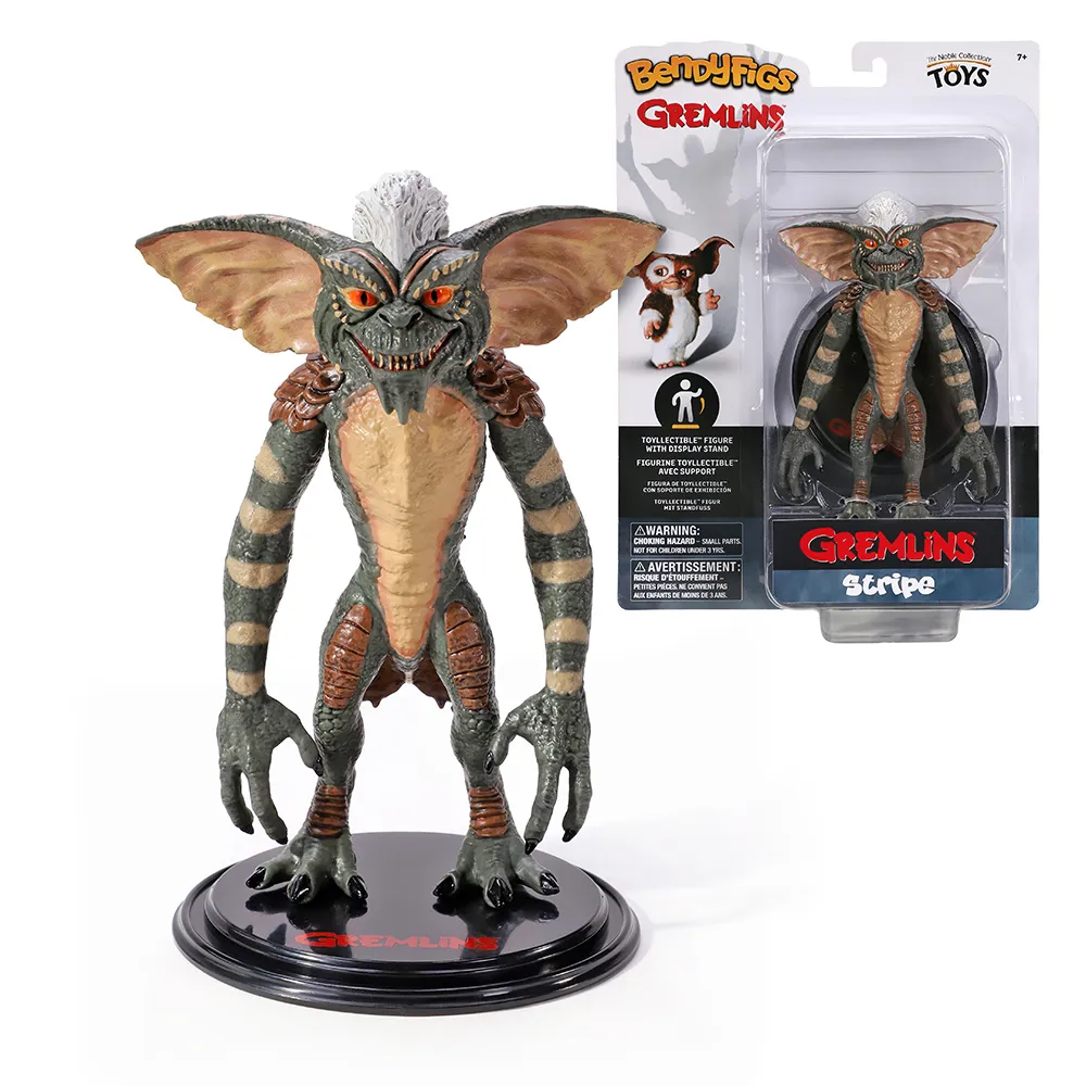 unete a la travesura con la figura Bendy Figs de 17 cm de Stripe de Gremlins. Este lIder astuto de los Gremlins esta representado con detalles cautivadores y su caracterIstica flexibilidad, que permite recrear poses que reflejan su personalidad traviesa. Una pieza imprescindible para los amantes de los clasicos y los seguidores de los Gremlins
